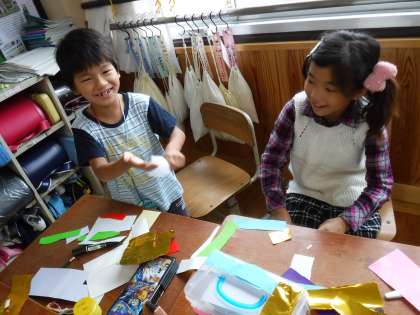 1年生にびっくりしてもらえるよう、宝箱を協力して作っていました。