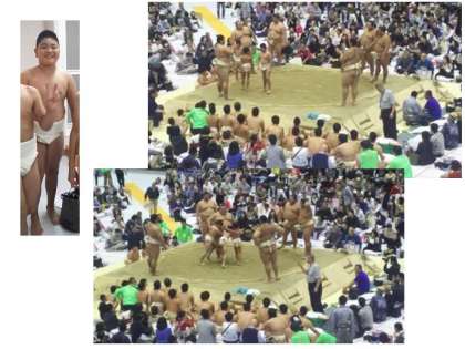 日曜日に府立体育館で,実際のお相撲さんの稽古を見たり