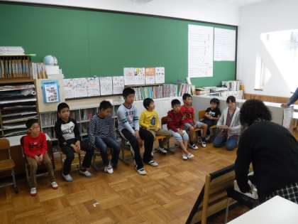 高学年が作った大道具を使って、学習発表会に向け練習スタートです。