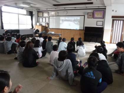 運動会の組体操のビデオを見ました。練習で頑張ったことや本番を終えてなど、それぞれいろんな気持ちで思い返していました。