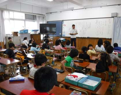今日は4年生の原先生が、道徳の授業をしてくださいました。授業の最後には、原先生に自己紹介をしている姿も見られました。