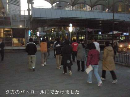 今日は夕方の定期パトロールを全教職員で出かけました。アルプラザ,ダイゴロー,各地域の公園を25名が手分けして回りました。