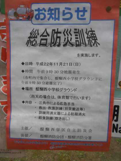 11月21日(日)に醍醐西学区の防災訓練が本校で実施されます。