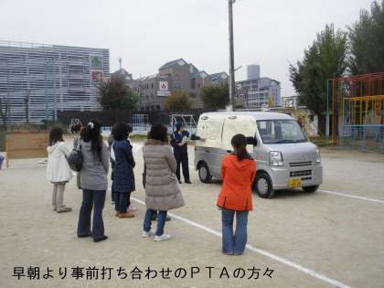 地域の交通安全の役員の方々,自治町内会連合会の諸団体方々,山科警察署の方々,そしてPTAの役員さん,教職員など子どもたちの人数よりも多くの方々の協力を得て,予定通り始まりました。