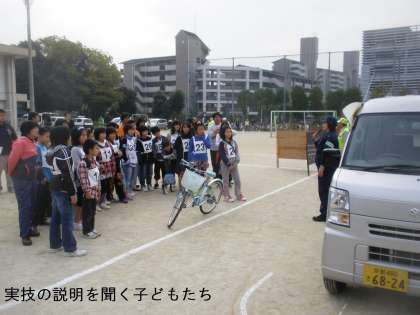 醍醐西小学校の4年5年6年生を対象にした自転車教室が10時から始まりました。
