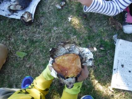なかなか焼けなくてとっても待ち遠しかったですが、熱々のおいもをおいしそうに食べていました。