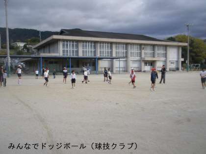 球技クラブは,4年,5年,6年が一緒になって男女仲良くドッジボールをしました。