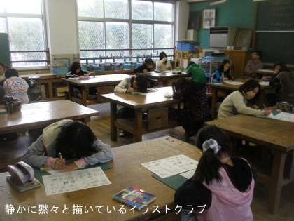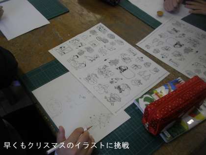 図工室では,イラストクラブがだれもしゃべることなく,集中してクリスマスのイラストに挑戦しています。