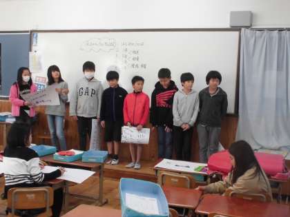 今月の25日(土)に行われる学習発表会の幕間で,それぞれの委員会にちなんだクイズなどを考え,発表の練習をしています。