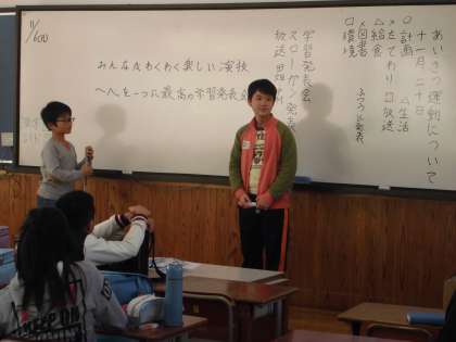計画委員会では,あいさつ運動について話し合いをすすめています。みんなが,いつでも,だれにでも元気にあいさつができるようになっていってほしいです。