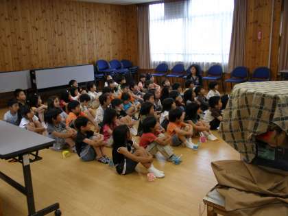 楽しい手品やぬいぐるみを使って,1年生の子どもたちにもわかりやすく,正しい歯のみがき方を教えてくださいました。