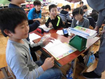 昨日,手作り天秤や1円玉を使って重さ比べをした3年生。今日は「ばねばかり」を使っています。はりが ビヨヨーンと動くと驚きの声や楽しい笑い声があがりました。そういえば,このばねばかり,今ではあまり見かけません。すっかり「昔の道具」になってしまいました。