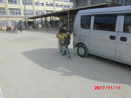 「自転車に乗る前に,右後方の確認をする。」「曲がり角では,一旦止まってから左右を確認する。」「道路の左端を通行する。」等,大切なルールをたくさん教えていただきました。