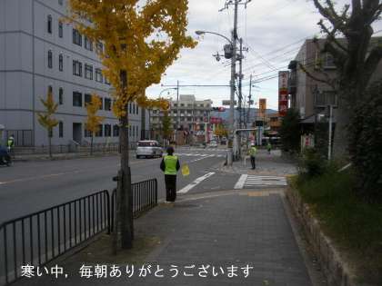 今日も寒い中,子どもたちの登校前から,子ども見まもり隊の方々が各地域に立っていただいています。