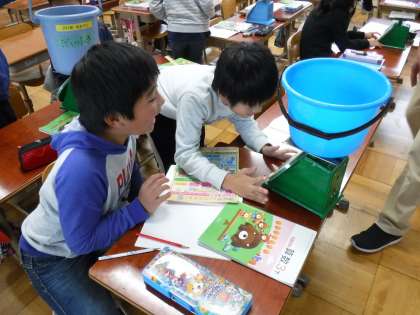 「1キログラムをぴったりつくろう」というめあてで学習していました。ペアで、何回もバケツに水を汲みなおしてチャレンジしていました。とっても楽しそうに取り組んでいる姿が見られました。今日の学習で1キログラムの量感をつかんでくれるといいなと思います。