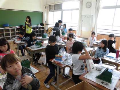 1kgがどれくらいかを予想し,上皿はかりで確かめました。