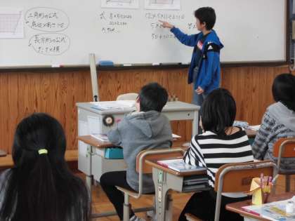 三角形や平行四辺形の面積をどうやって求めるか学習しています。
