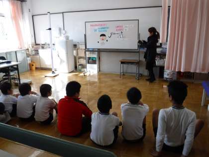 身体計測の時間に,「だんだん寒くなってカゼやインフルエンザにかからないように,どんなことに気をつけたらいいかな?」と考えました。