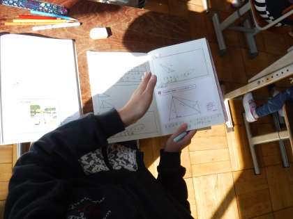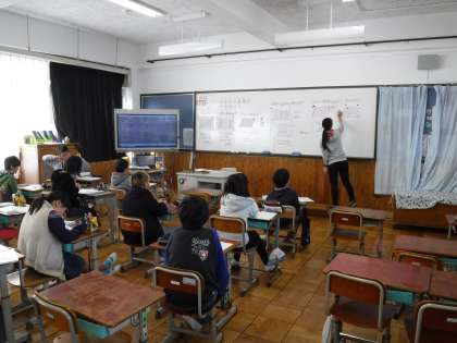 三角形の面積を求める公式を使って,四角形の面積を工夫して求めています。