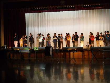 体育館を暗くし、本番さながらの練習をしていました。リコーダーは曲想にあった素敵な音色で演奏していました。本番が楽しみです。