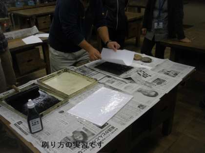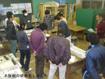 放課後遅くに定期的に行っている先生たちの勉強会がありました。今日は,これから子どもたちに教える図工の「木版画」の研修をしました。