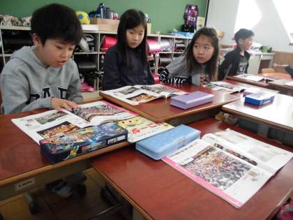 3曲のおはやしを聞いて,楽器の音色やリズムについて気が付いたことを話し合っています。
