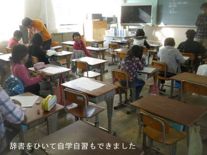 おさらい(復習)プリントを取り組んだ5年生は,辞書をひいたりして自学自習ができている子どもいました。また,先生が個別に対応もできるので,土曜学習は子どもたちの学力定着に有効な学習会です。