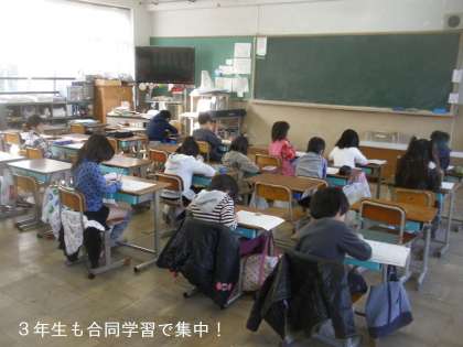 3年4年はともに1組2組合同での学習会でした。複数の先生で個々の子どもたちに対応して,子どもたちも日々の授業より集中して取り組んでいました。