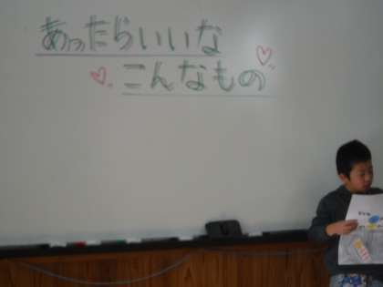 みんなが考えた「あったらいいな、こんなもの」の発表会をしました。