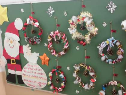 12月に入り,寒さも厳しくなってきました。校内では,クリスマスの話題もちらほら聞かれるようになりました。掲示板には1年生が作ったリースが飾られ,6年生を中心とした外国語の放送では,英語バージョンの「ジングルベル」が話題になりました。