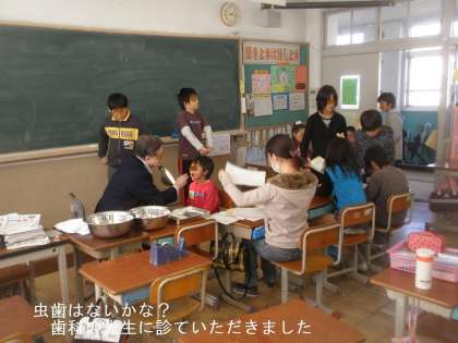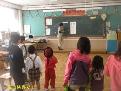 来年度リーダーになる5年生は,園児たちを気遣い,やさしく接しています。一緒に手をつないでまわったり,学校医の先生の補助をしてやさしく声をかけたり,大活躍です。総合の学習で保育交流を経験している5年生ですのでとても意欲的に行動しています。