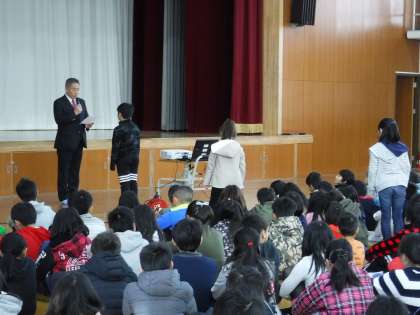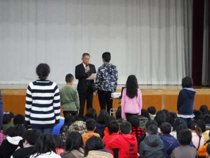 代表の児童はしっかり礼をして受け取っていました。一人一人の活躍が嬉しいです。これを励みに自信をつけていってほしいと思います。