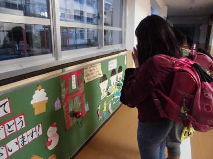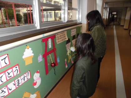 保健室前の掲示板にはお正月ということもあり,健康神社と称したものと