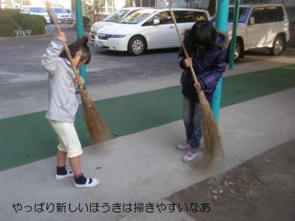 それを見かねて地域女性会の方が,子どもたちにと竹ぼうきを買っていただいたのです。