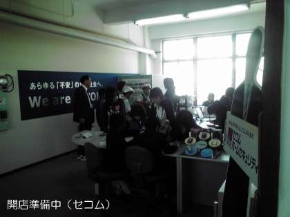 生き方探求館に到着しました。さっそく各ブースに分かれて開店準備に取りかかっています。