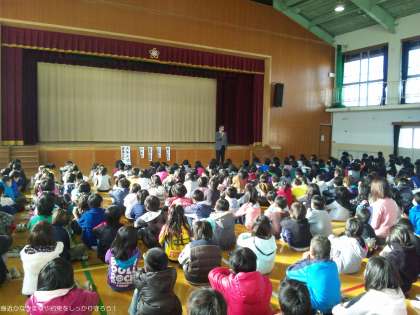 12月の朝会がありました。人権月間真っ最中ということで,校長先生から2つのお話がありました。