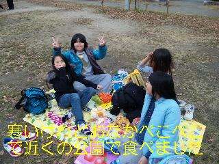 調べ学習,体験学習も終わり,おなかぺこぺこです。少し寒いけれど,近くの公園でお弁当にしました。