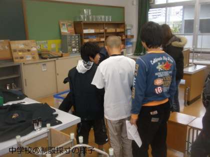 放課後に,中学校の制服採寸がありました。保護者の方もかけつけてくださり,栗陵中学校の制服の採寸と体操服の販売に業者の方が来られました。