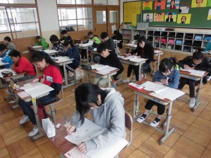 6年生は朝から,「全国学力学習状況調査」に取り組みました。1時間目から4時間目まで集中して取り組んでいたので,疲れた表情の児童もいましたが,とてもがんばっていました。