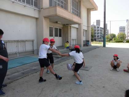 1時間目、体育の学習で「体ほぐしの運動」をしました。
