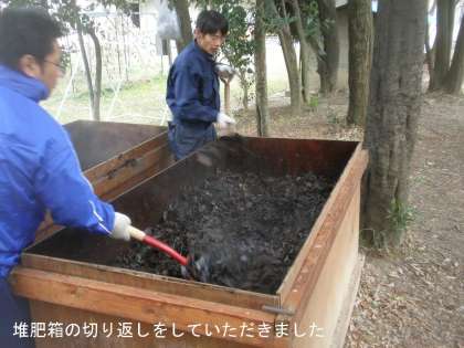堆肥箱の切り返しをしていただきました