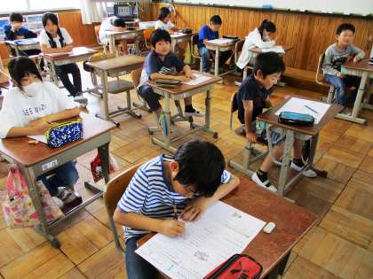 集中して国語のテストに取り組んでいました。見直しもしっかりできたかな?