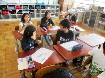 4月は『あいさつ』について考えました。あいさつの合言葉は,あ「明るく」い「いきおいよく」さ「さきに」つ「つづけて」です。自分から積極的にあいさつできるといいですね。朝の登校時間に,地域の見守り隊の方にも明るく自分たちからあいさつできるようになるといいですね。