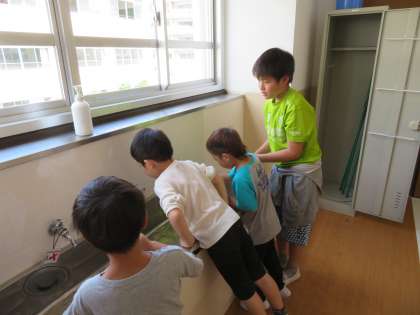 4月から1年生と一緒にそうじすることを続けています。ほうきの使い方や机の運び方,ぞうきんのしぼり方を優しくていねいに教える姿がすてきでした。