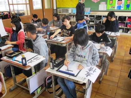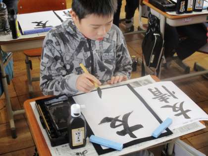 今日は1組が書写でした。丁寧に書けていても,「まだ納得できない!」と何度も挑戦していました。『情』のバランスのポイントをおさえると,形よく書くことができました。