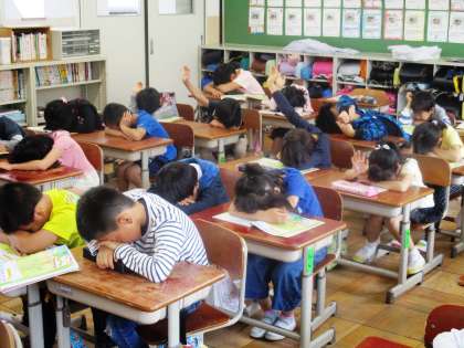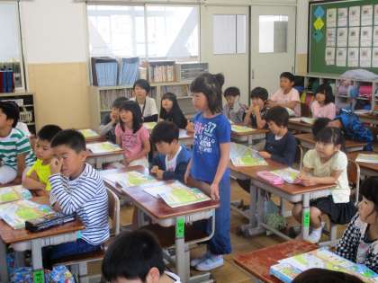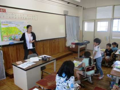 いろいろな声で,かえるの鳴き声や様子を表しました。声や音の高さについても考えながら学習しました。