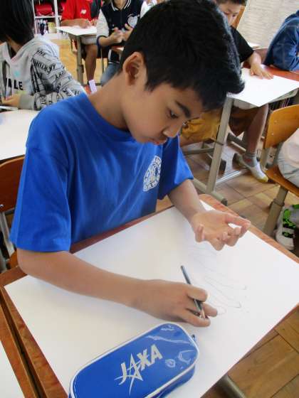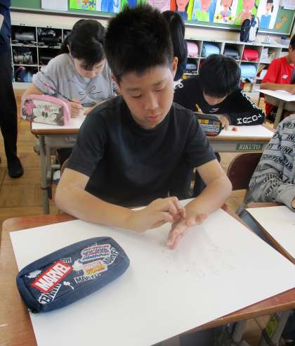 手のデッサンをしています。自分の手をしっかり観察しながら描きました。