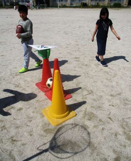 太陽の光を使って,色々なかげをつくってみました。ドラゴンに見える?など,かげを見立てて楽しく学習しました。