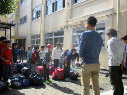 今日から待ちに待った花背山の家での長期宿泊学習です。欠席0で,全員そろって出発しました。協力・感謝・自主性を合言葉に,思いやりを持って活動できるように4日間がんばります。帰ってきた時の成長した姿が楽しみですね。行ってきます!