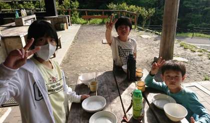 グループで協力して、夕食のカレーを作ります。それぞれ自分の役割に責任をもって取り組みます❗